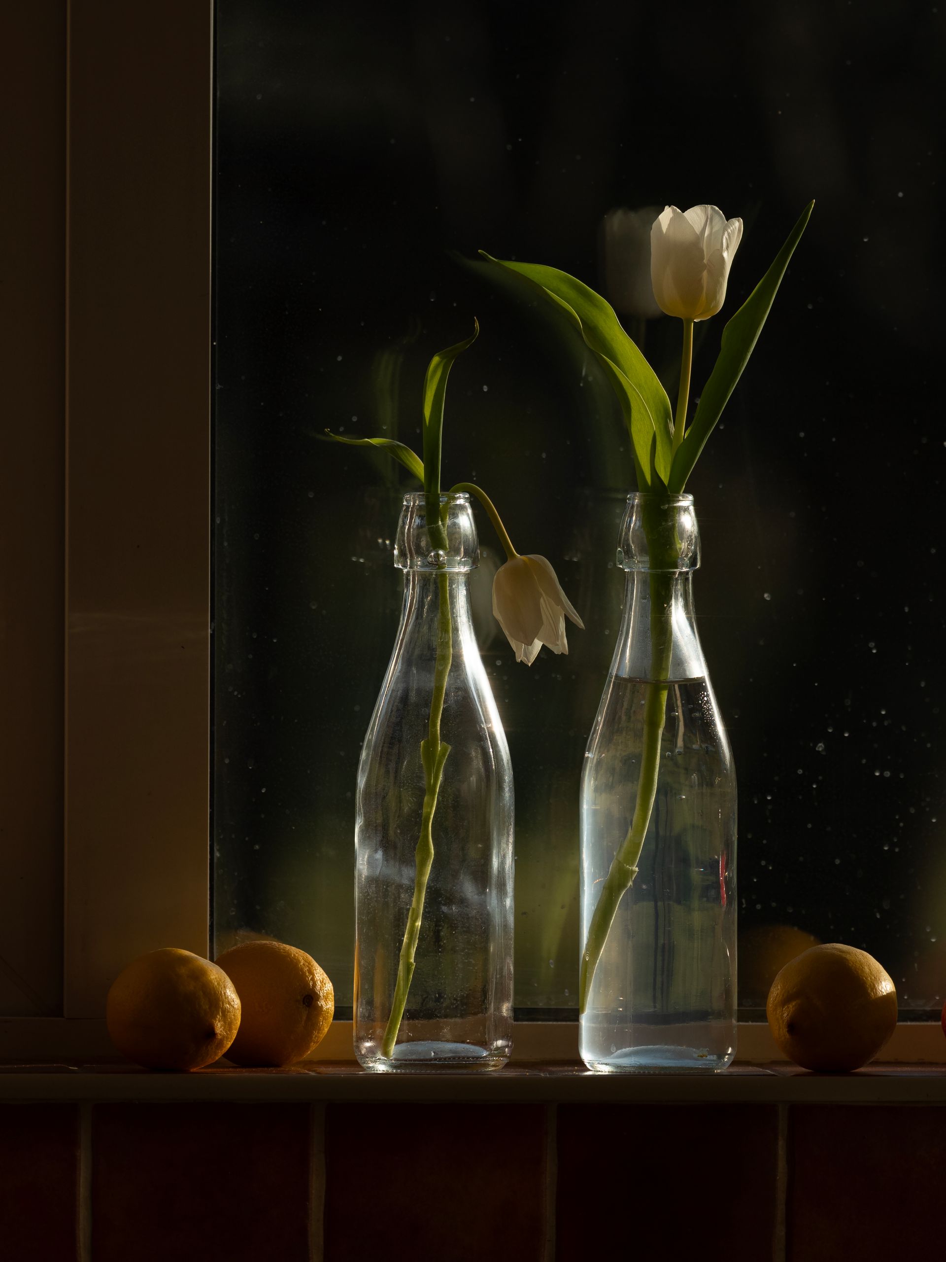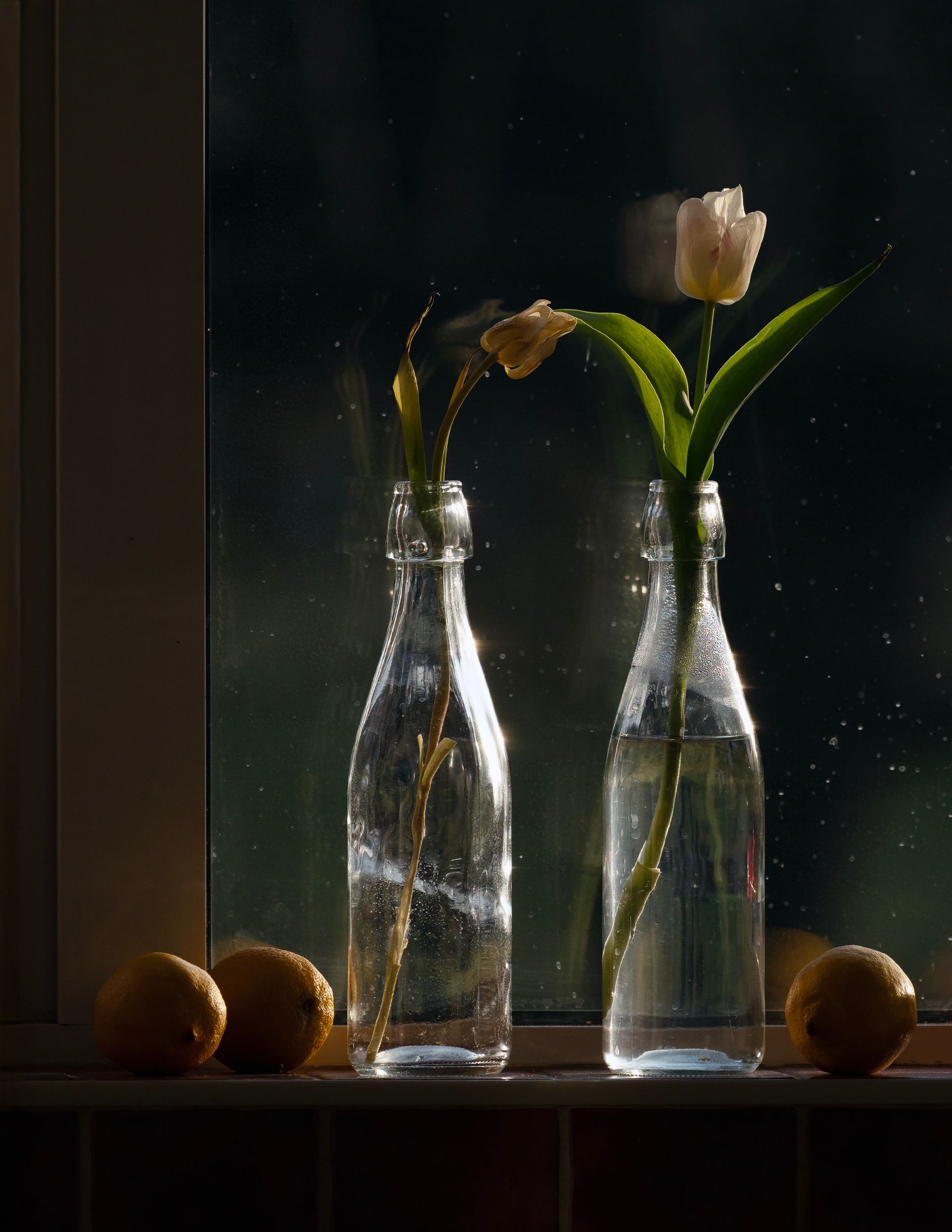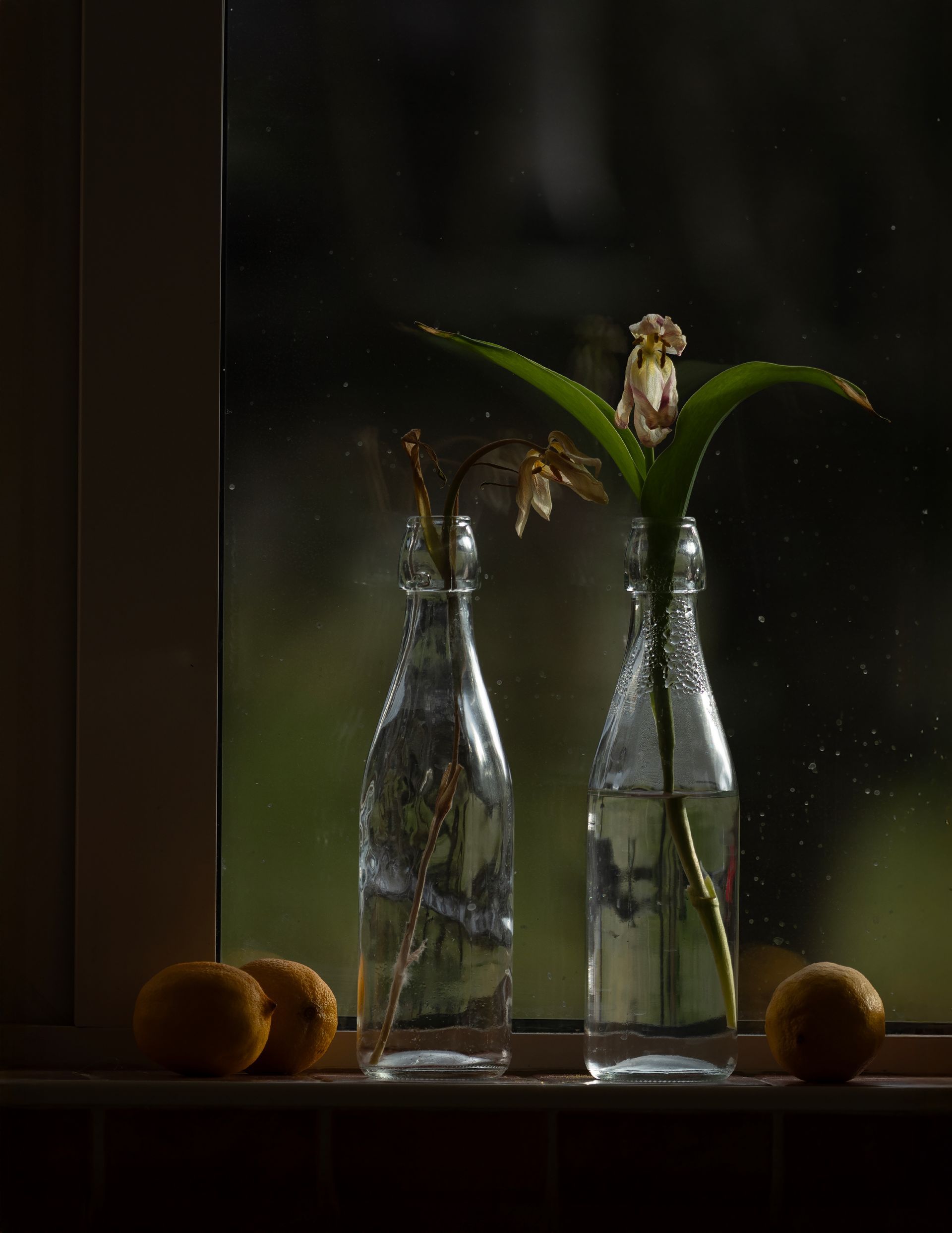 Every day, I watched them. The one in water gradually bloomed, while the other first bowed its “head” and then lifted it again. Over time, it became fragile, its color, structure, and shape changed.